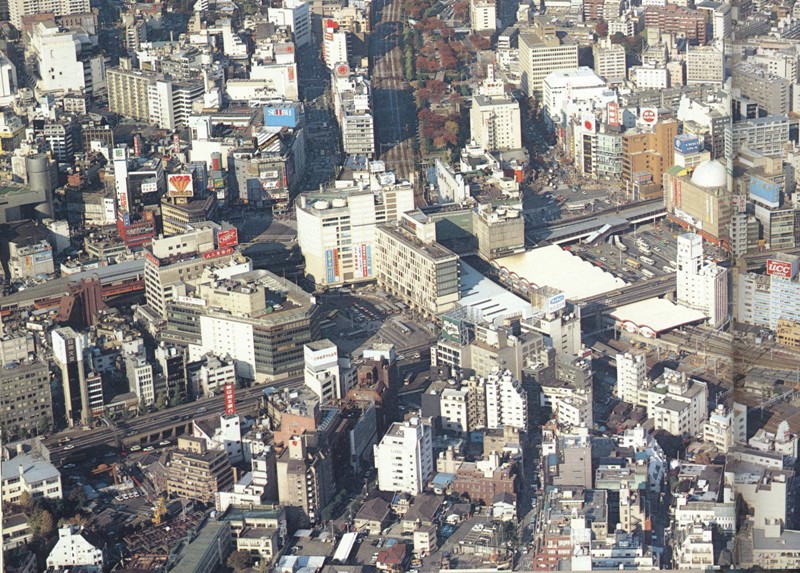 ここでは、昭和56年当時の渋谷空撮に写っているアパート時代の日本会館(現在は同じ名前で貸しビルになっています)をズーミングします。