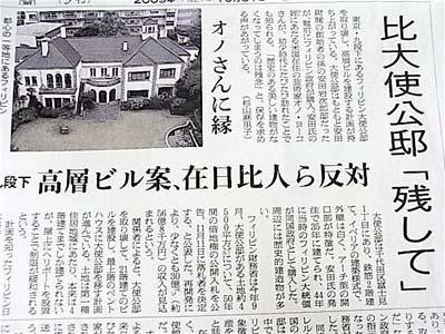 たとえば、どのような建物かと聞くと、鳥居坂の旧フィリピン大使館みたいな建物と言われ、あれはマルコス資産でアキノ政権が調査中だから使えないと答えたそうです。