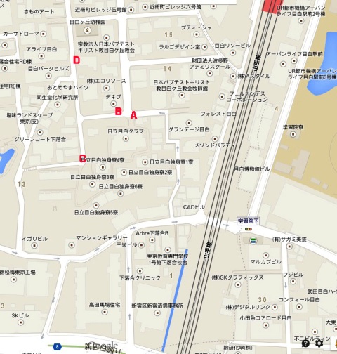 以前は、この建物、山手線からも見えたのですよね。(下の地図ではA地点)