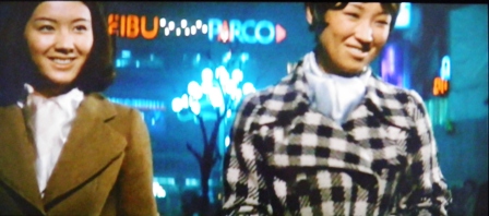 酒井和歌子が階段を駆け下り道路に飛び出す場面でも、道路東側から二幸東隣にあるAOKI靴店のショッピングバッグを持って歩いてきた男女と交錯します。