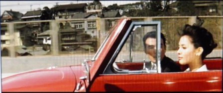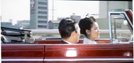 車内を覗くと、中等は眉子さんと接吻(じつは頬っぺたを重ねているだけの生真面目な演技)。