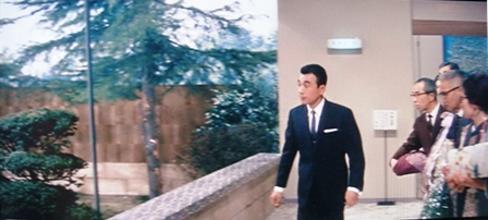 植木等さん(役名は中等:なかひとし)は画面の右方向へ進んだ様子。