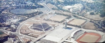 映画の中で植木等さんが駒沢オリンピック公園で踊る場面で、左端に映っている建物が映ります。