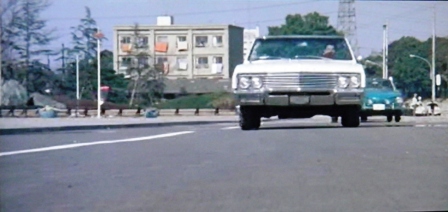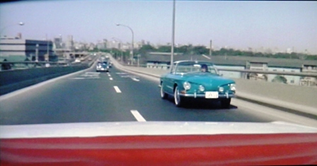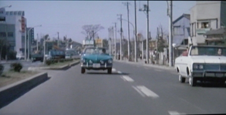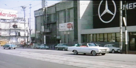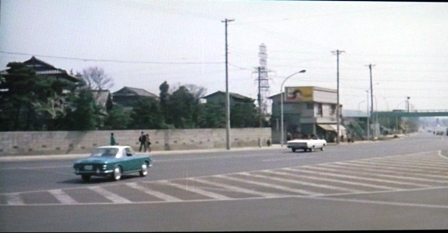 この場面のちょっと前に、植木等さんのクルマの向こう側を歩行者が歩いています。