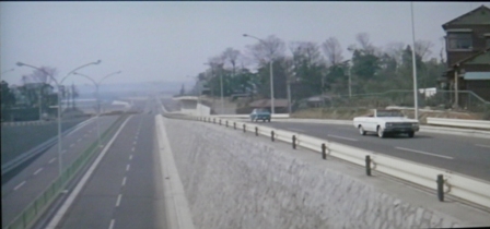 この後、カメラの上を自動車が走り抜ける場面と、クルマを背後から追う場面がありますが、