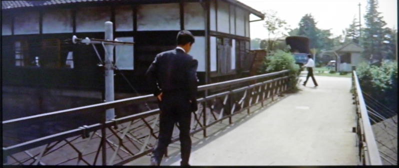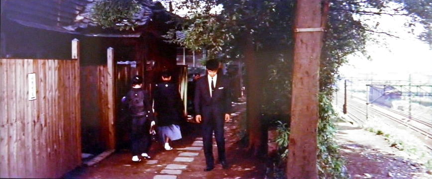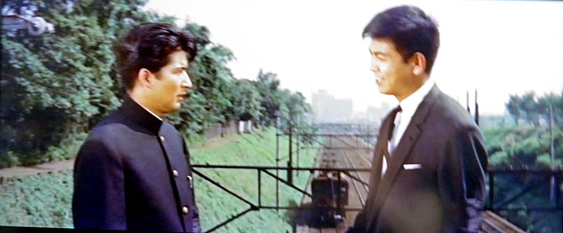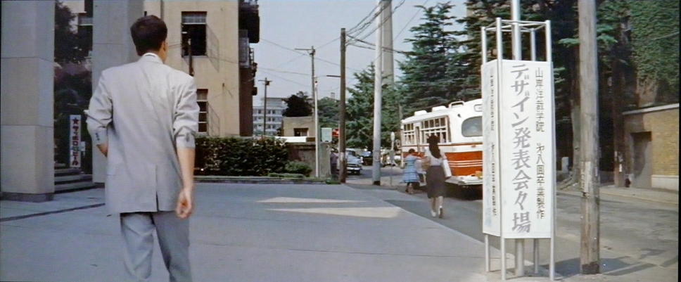 ラストシーン。正当防衛が認められた石原裕次郎は婚約者の清水まゆみ、葉山良二・芦川いづみ夫妻と東京地検から出て来て、道路を斜め横断します。