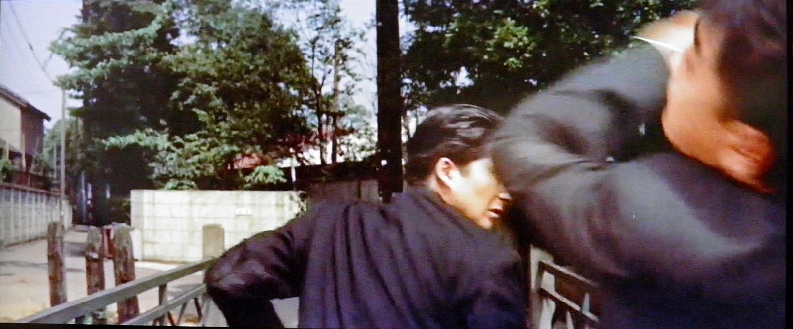 反対方向へ向かって歩き出す石原裕次郎。