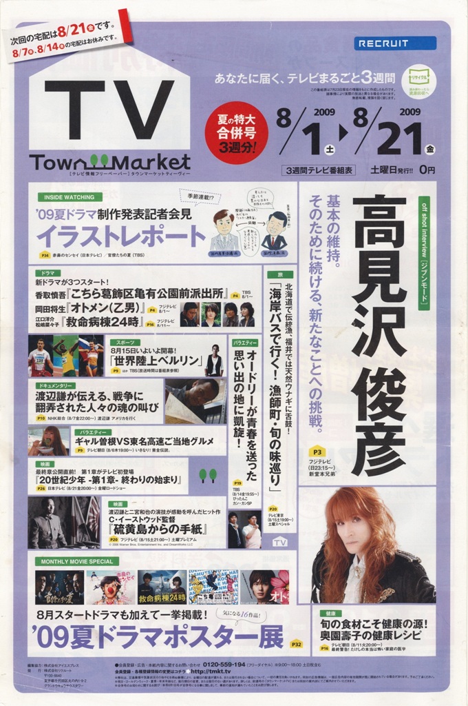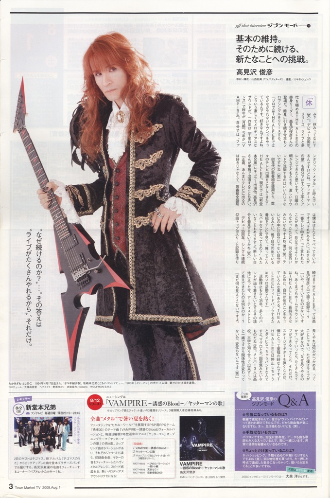 2009年8月1日号に、高見沢俊彦インタビュー記事が掲載されています。