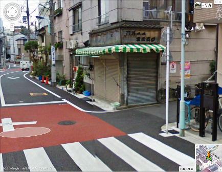 ストリートビューで、もうちょっと近付くと、はっきり文字まで読みとれますが、この店舗はドラマのロケーションで「代官山町2丁目」という住居表示をつけている場所に、本物の文京区の住居表示があります。ドラマのロケ地がわからないように架空の住所表示を貼りつけていたのですね。