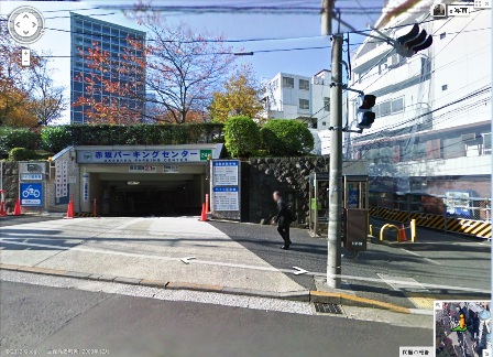 氷川公園地下の駐車場(赤坂パーキングセンターというらしい)だと思います。
