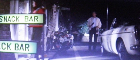 オートバイから降りた二人が入った店は「SNACK BAR」という普通名詞か屋号か不明な店舗。
