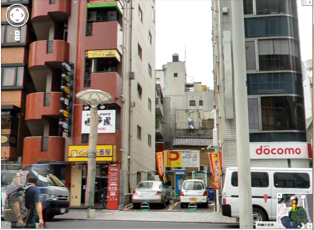 Googleのストリートビューでコインパーキングの後ろに見えた物干し台は「壌『泡』組」の隣の建物にありました。